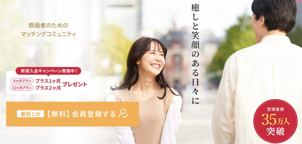 プロフィールには都合の良い時間や子どもの有無などを登録できる既婚者に特化した項目があり、30代・40代の既婚者を中心に多くの方に選ばれ続けている。